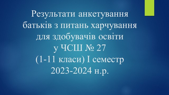 Анкета для батьків з питань харчування для здобувачів освіти у ЧСШ № 27 (1-11 класи) I семестр 2023-2024 н.р.