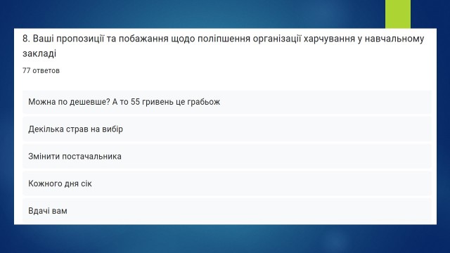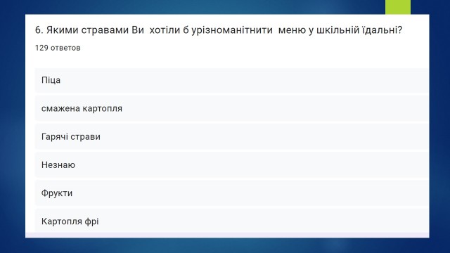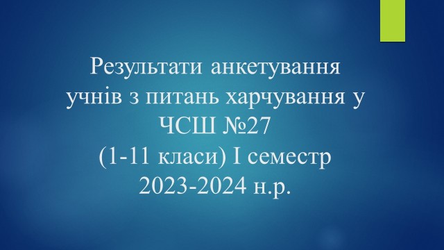 Анкета для учнів з питань харчування у ЧСШ №27 (1-11 класи) I семестр 2023-2024 н.р.